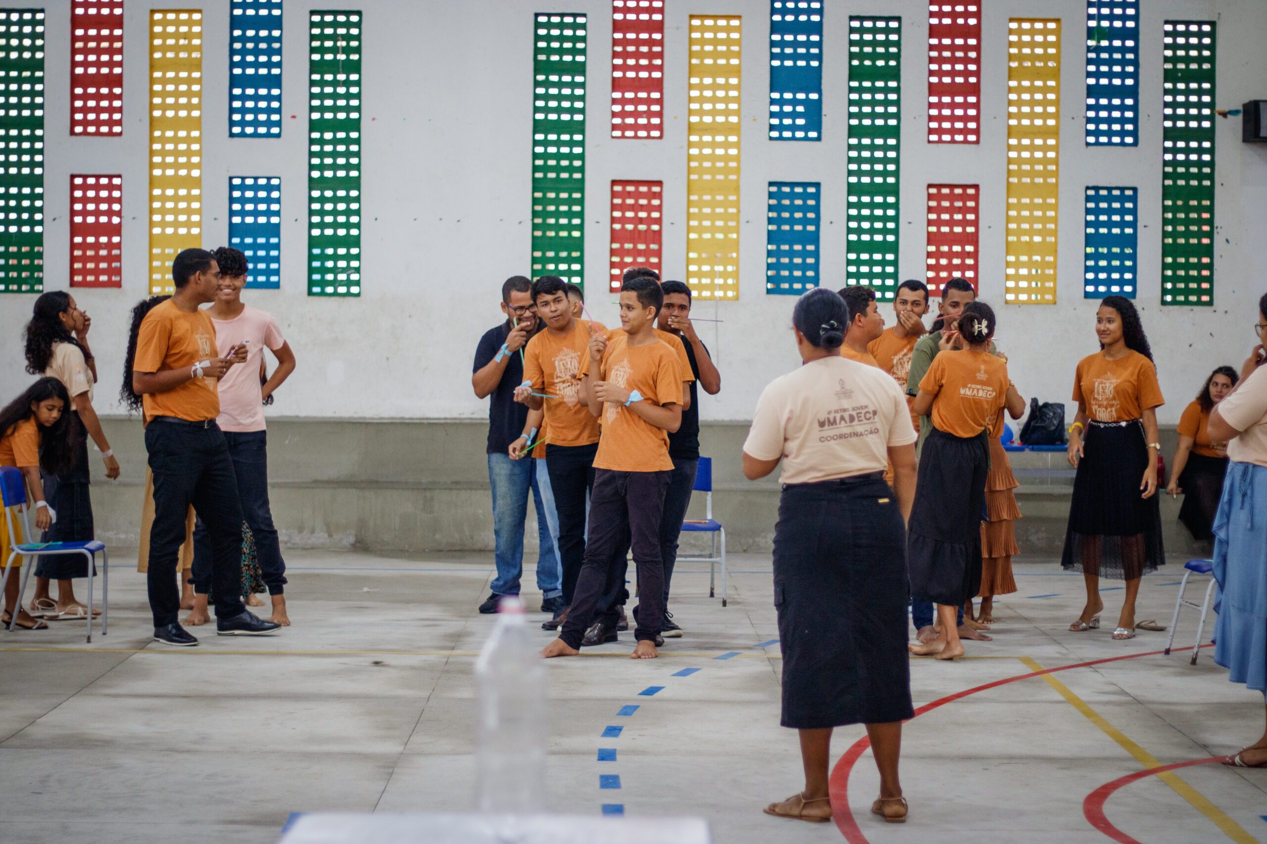 O momento contou com a divisão dos jovens em três equipes (branca, amarela e azul), seguida de brincadeiras e perguntas bíblicas sobre o livro de Joel, o qual foi escolhido para o momento de aprendizado.