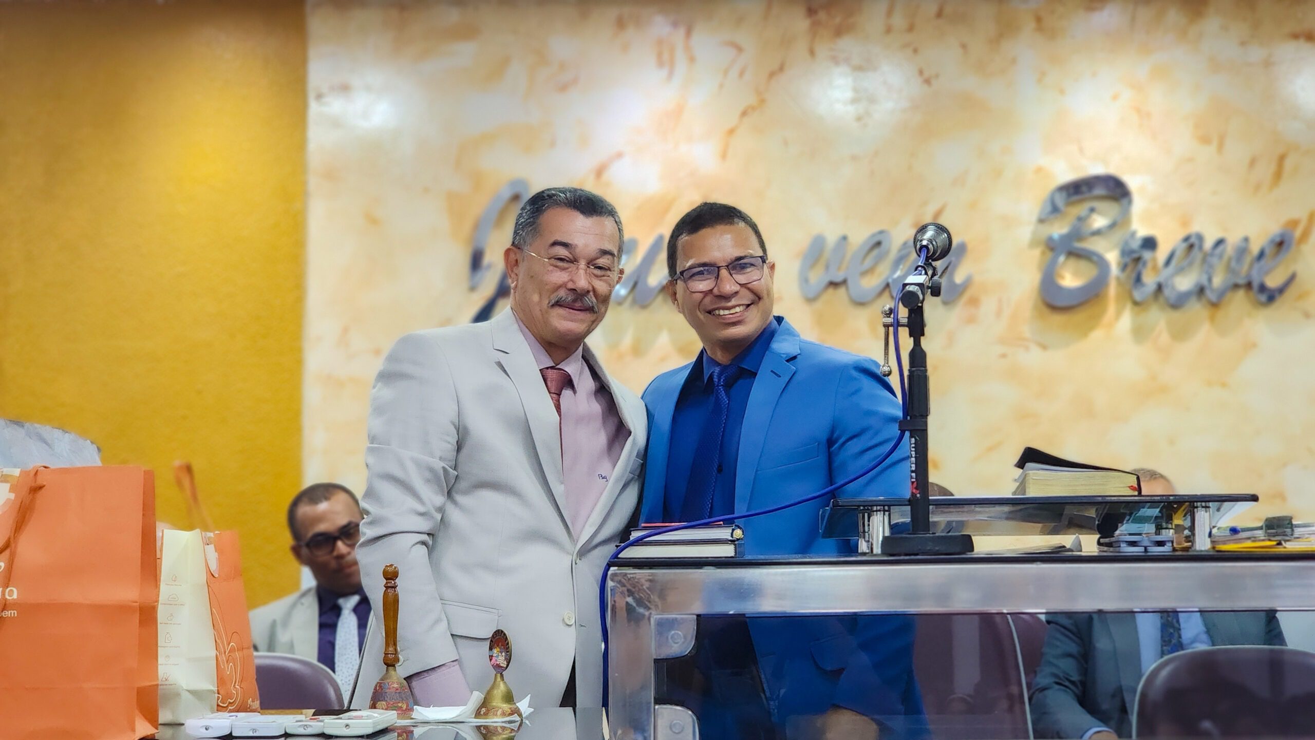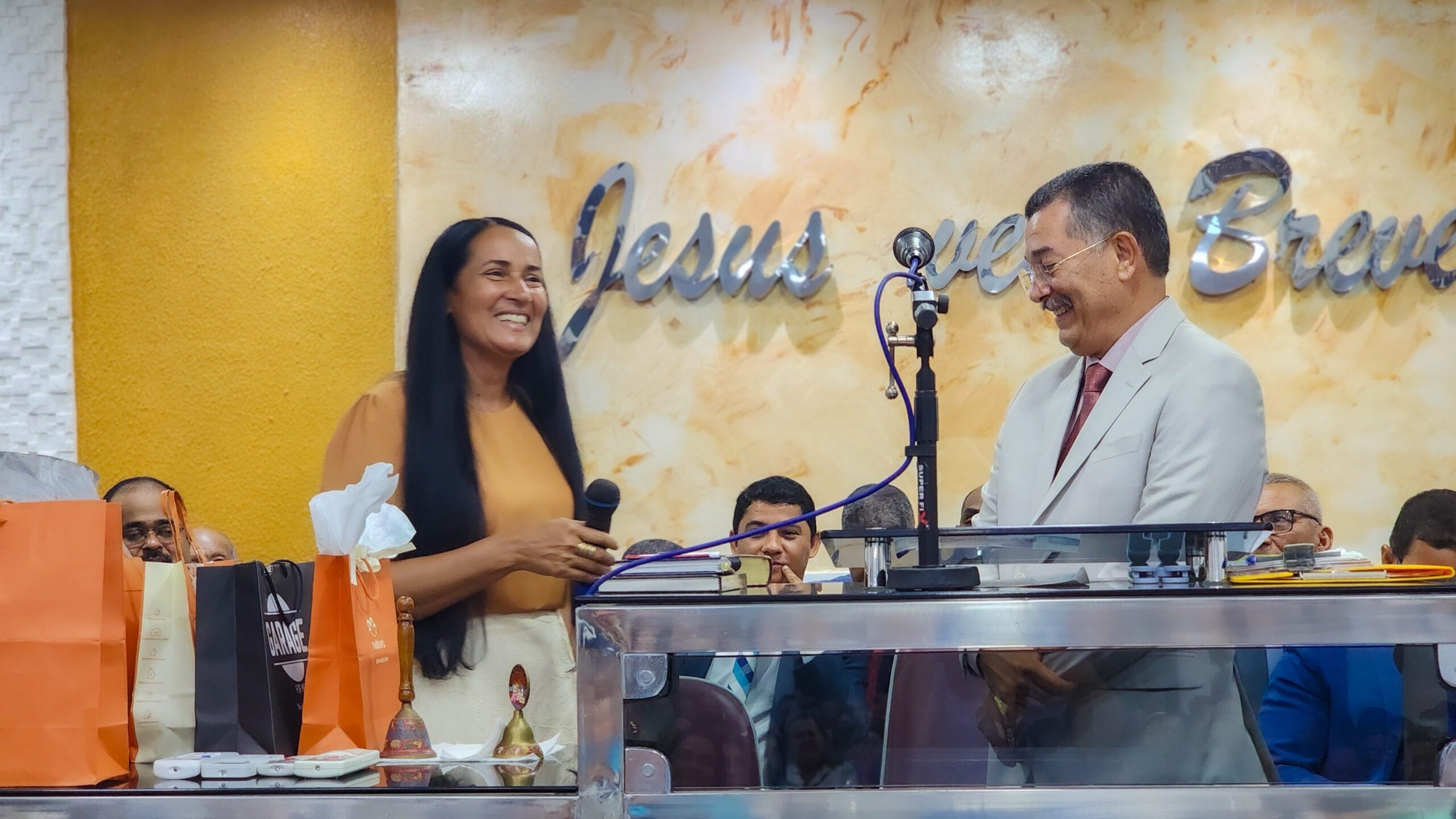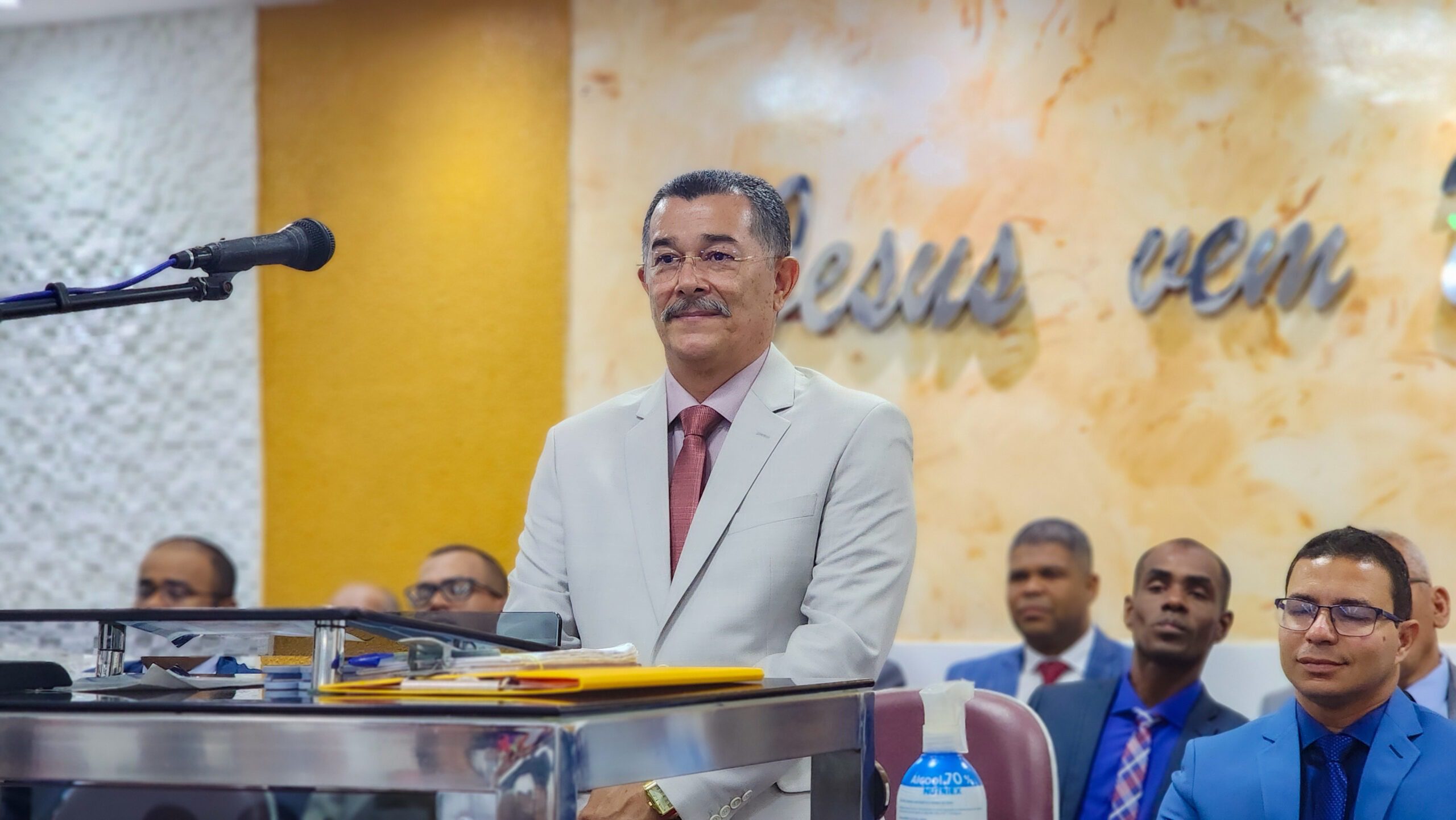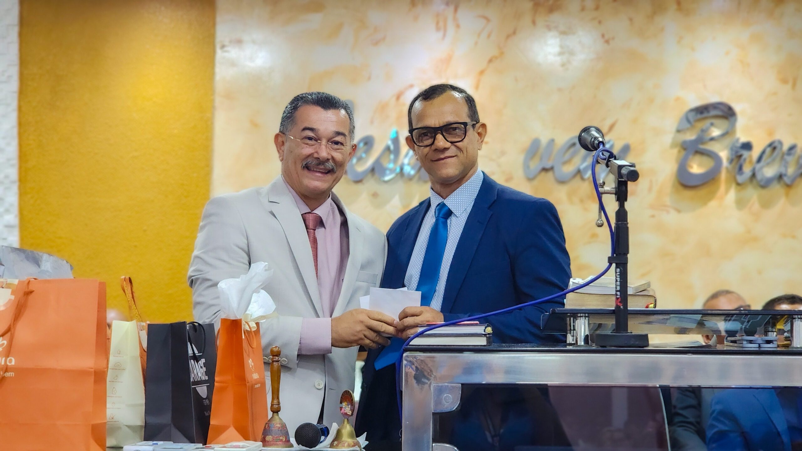 Logo após, o pastor Cláudio fez seus agradecimentos, ressaltando a importância da união da igreja e expressando sua satisfação por todo o carinho e reconhecimento recebido.