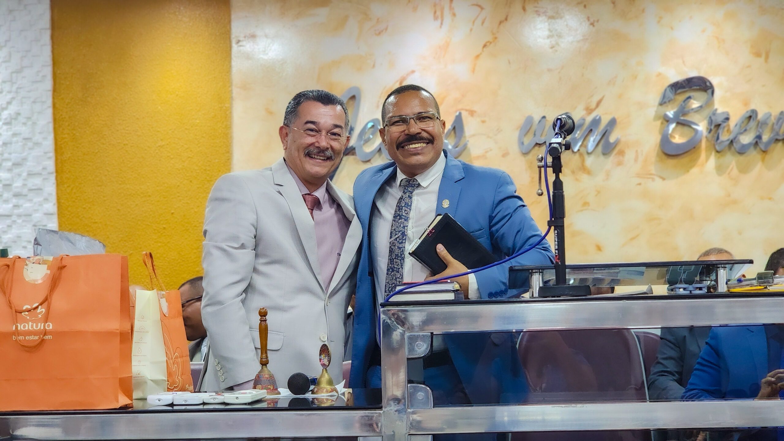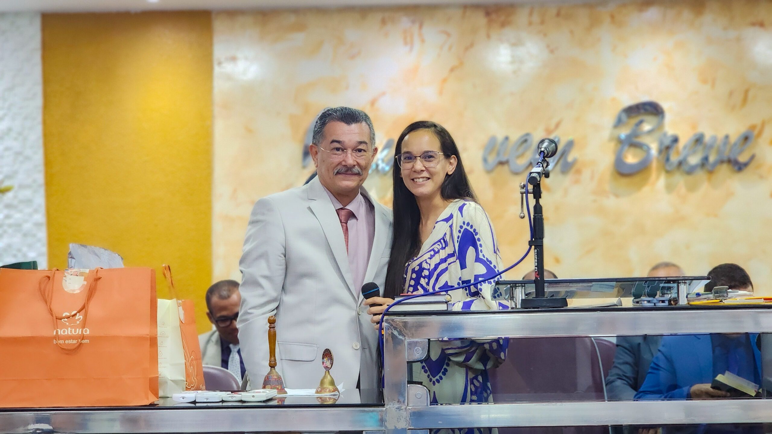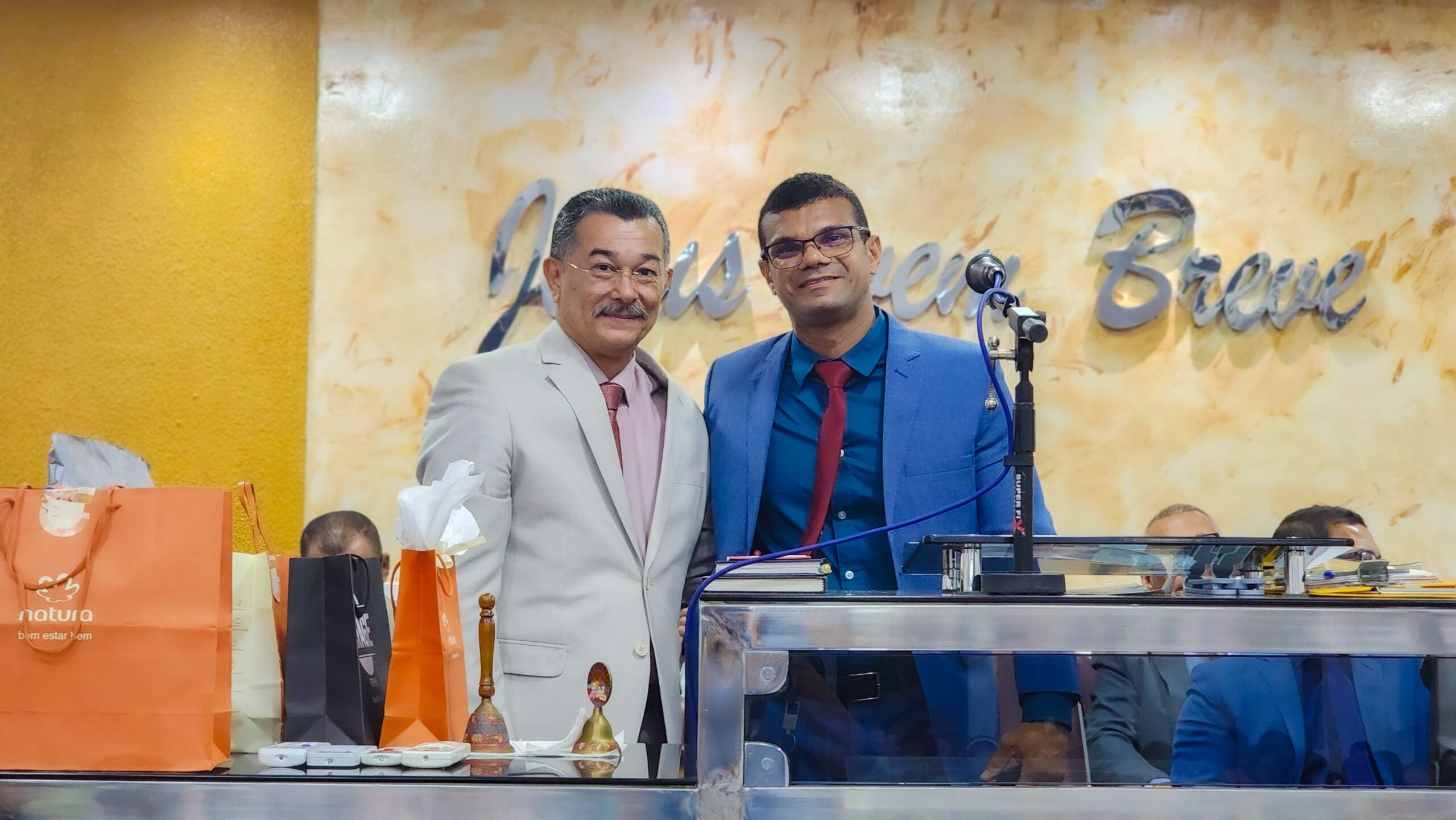 Logo após, o pastor Cláudio fez seus agradecimentos, ressaltando a importância da união da igreja e expressando sua satisfação por todo o carinho e reconhecimento recebido.