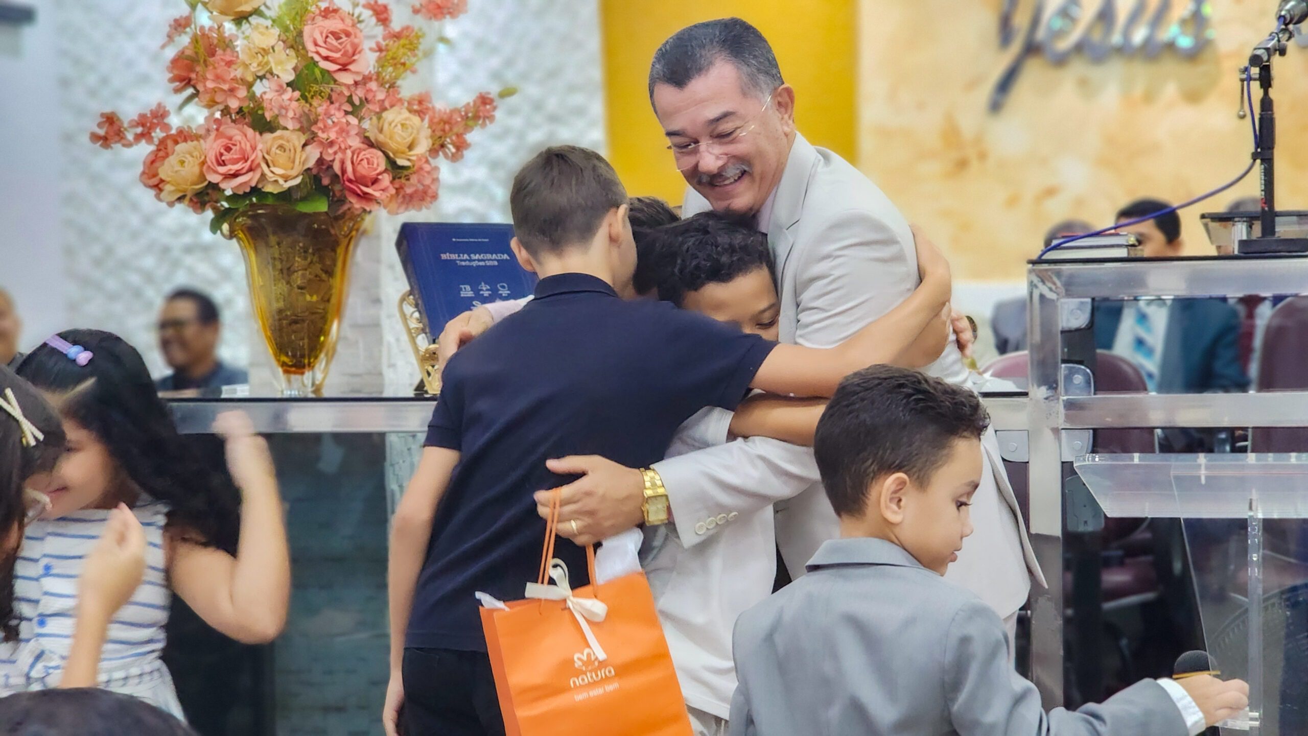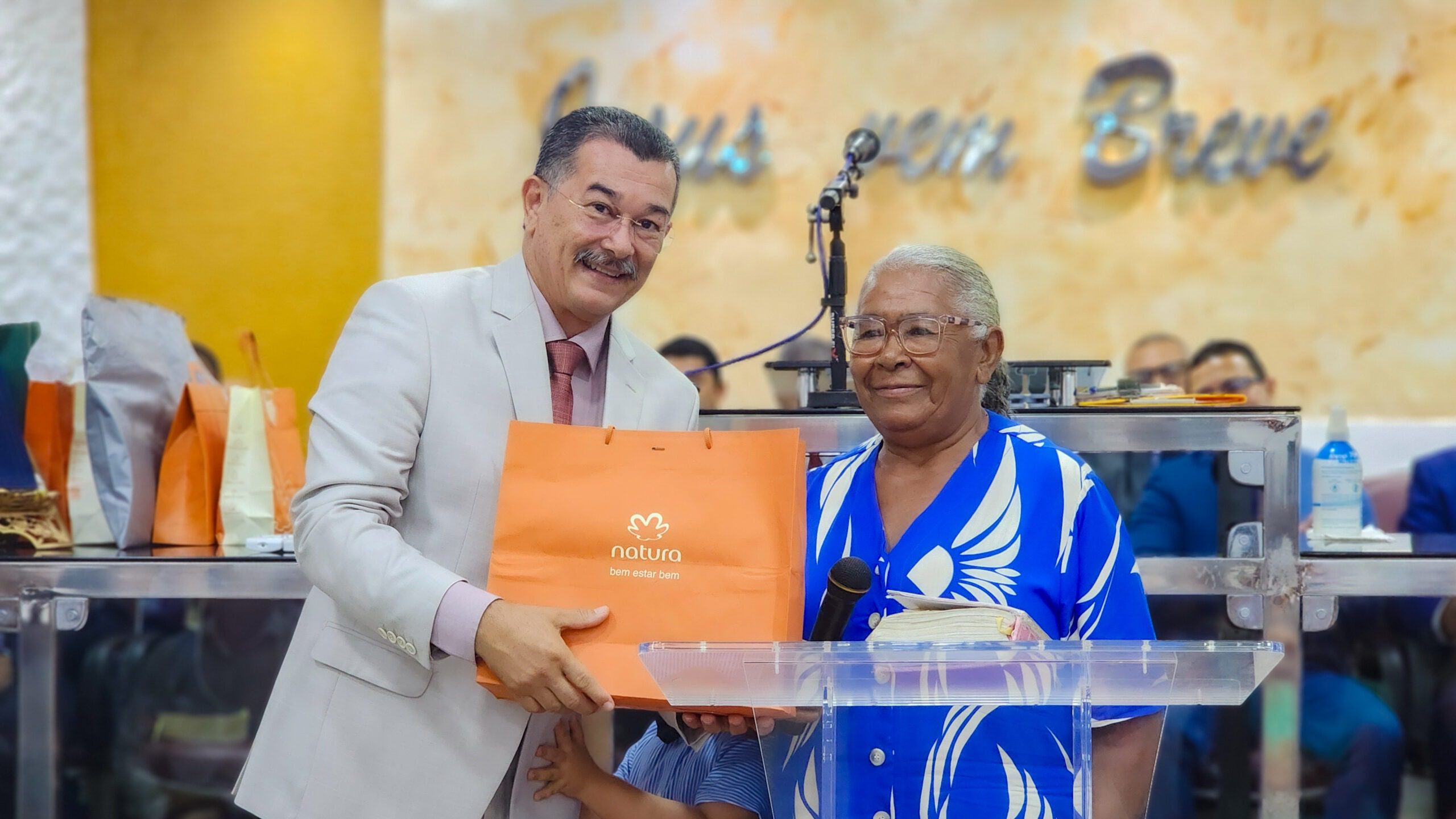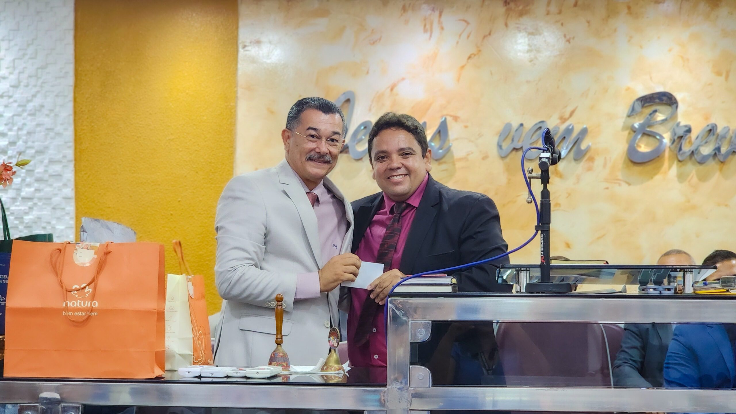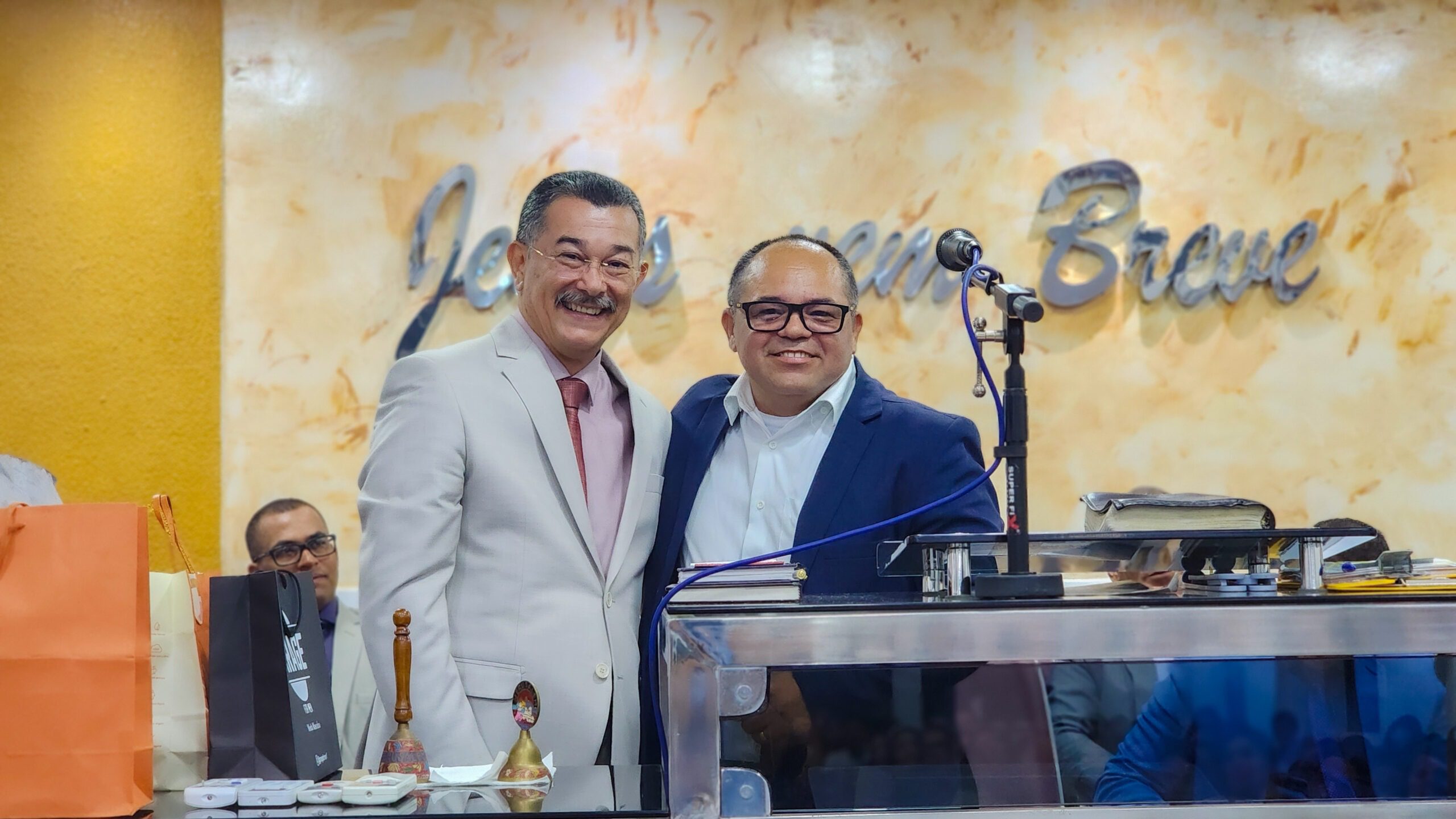 Logo após, o pastor Cláudio fez seus agradecimentos, ressaltando a importância da união da igreja e expressando sua satisfação por todo o carinho e reconhecimento recebido.