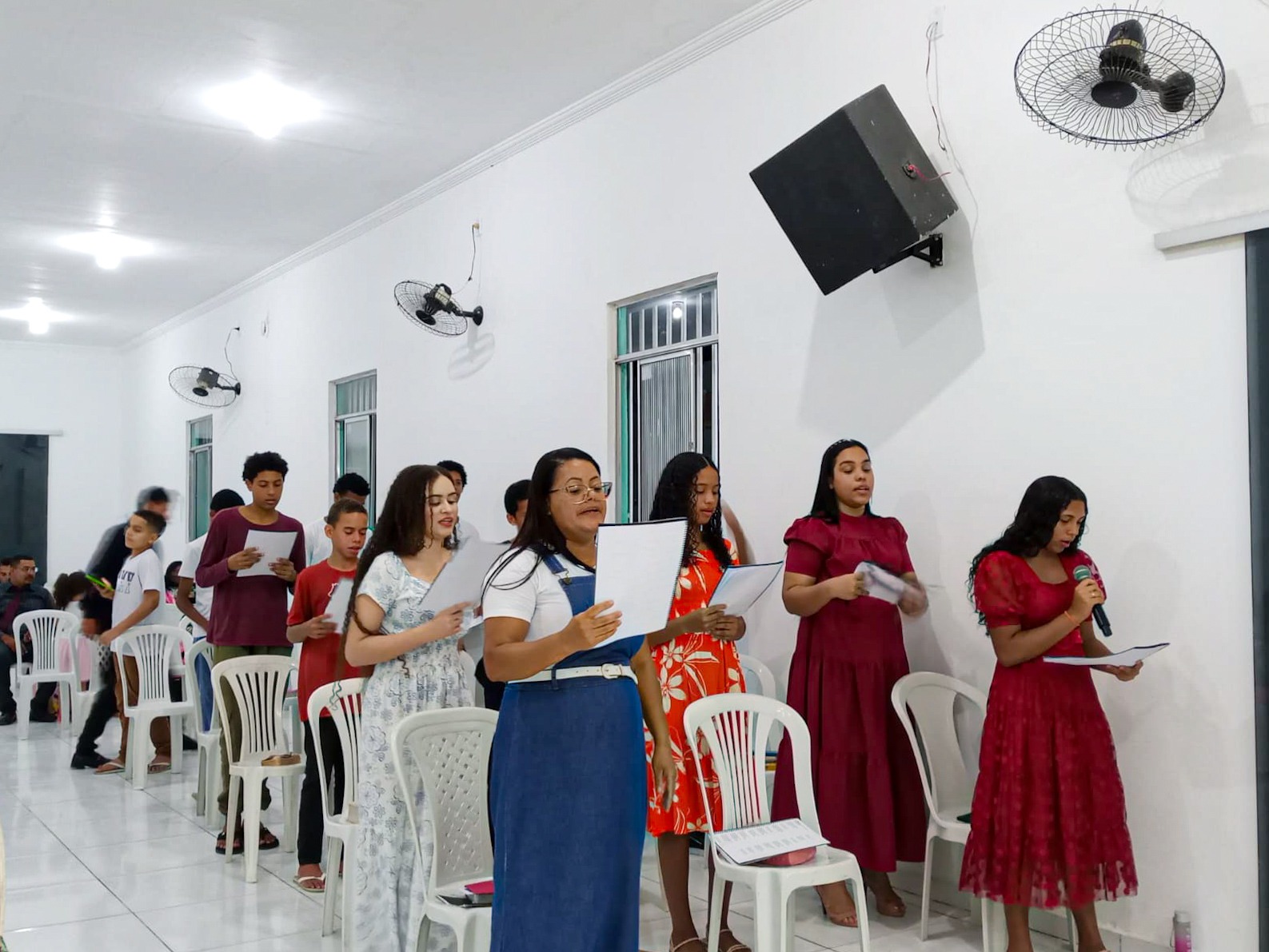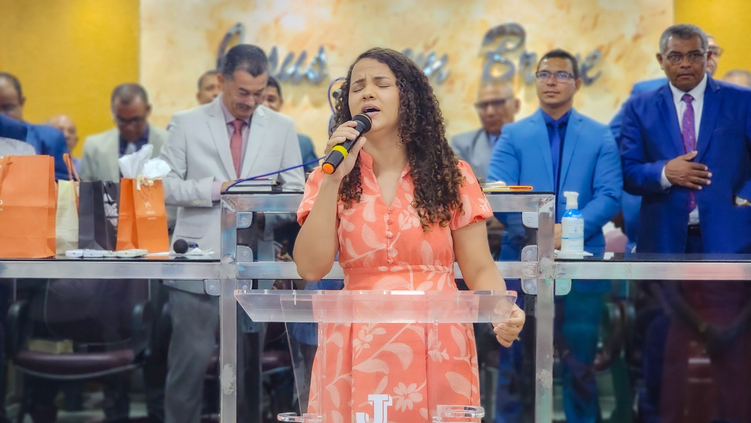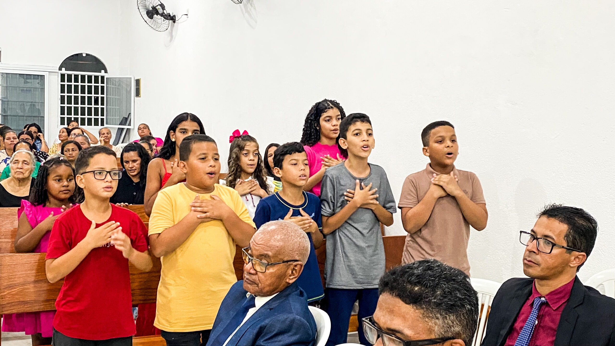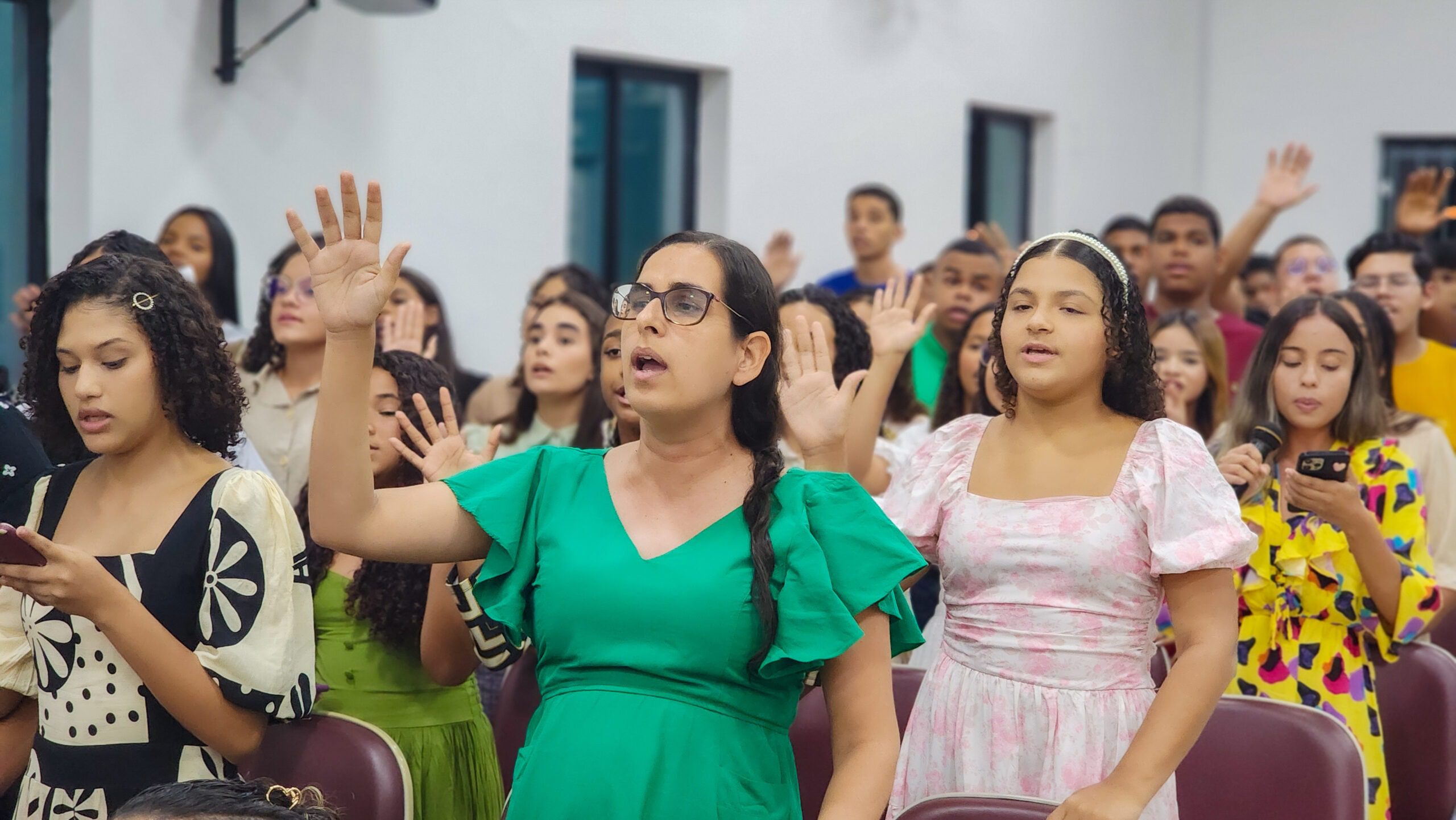 O culto teve louvores dos departamentos de crianças, jovens, senhoras, senhores e da cantora Thalia Dantas (templo sede).