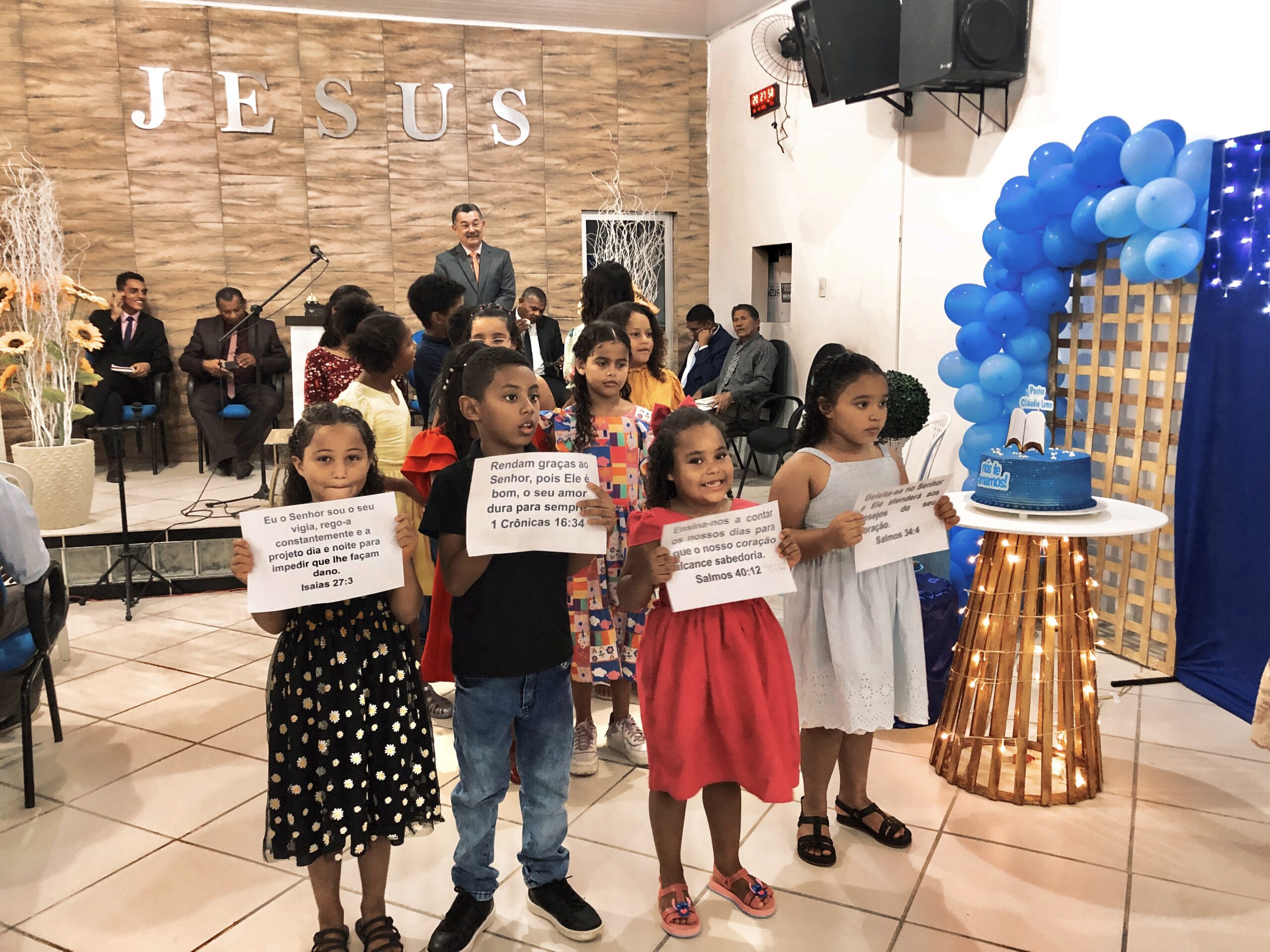 Os departamentos locais (crianças, jovens, senhoras e senhores) e os cantores da congregação louvaram a Deus durante o culto. Os departamentos também realizaram homenagens ao pastor. O presbítero Cícero Martins leu em Jeremias 1:5 para o pastor Cláudio.
