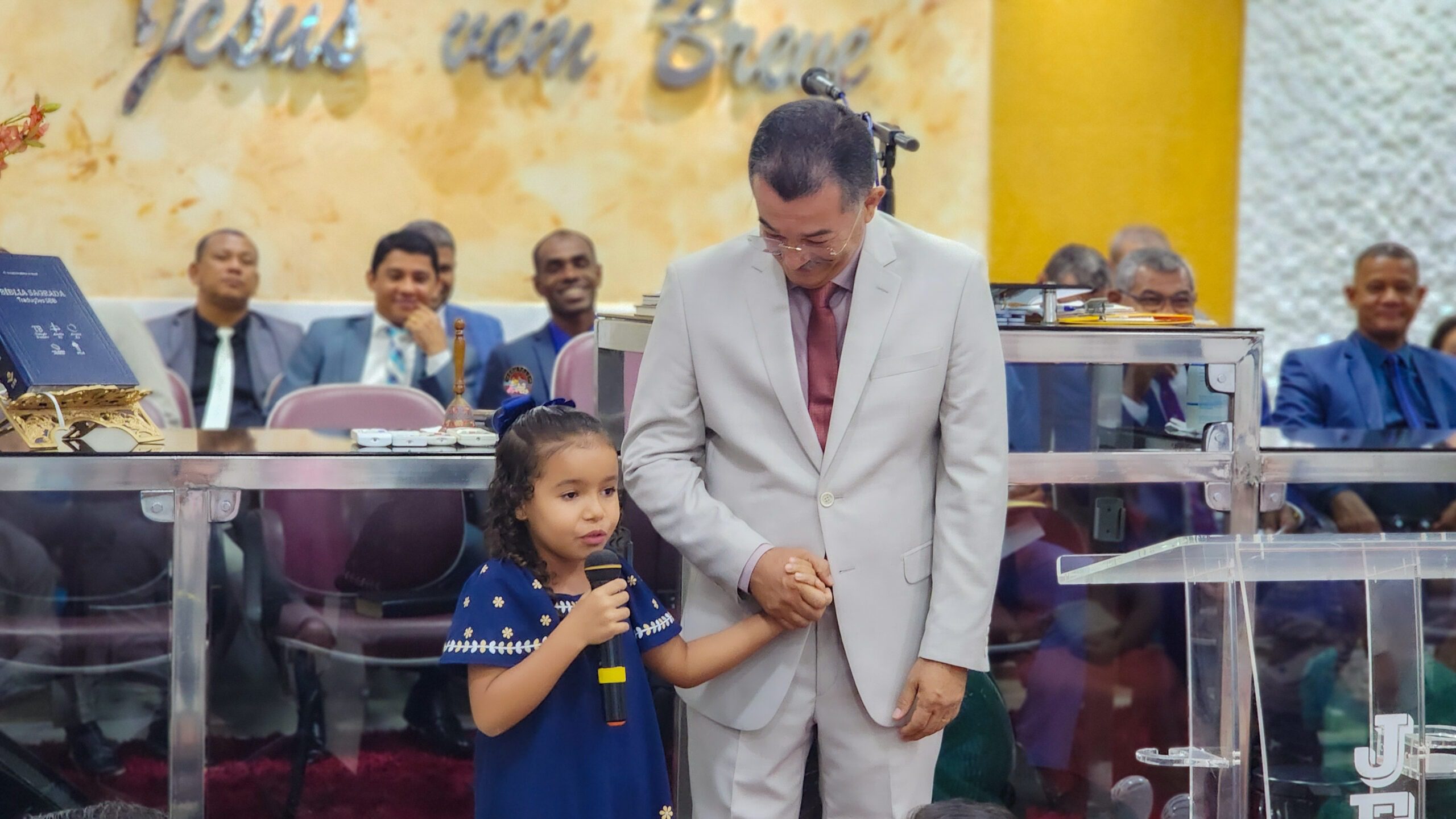 Após as leituras bíblicas em homenagem ao pastor e os louvores entoados, o pastor Cláudio leu em Cantares 12:13. Ele expressou sua profunda gratidão à sua família, aos obreiros e a toda a igreja pelo carinho, pelas orações e pelo apoio constante.