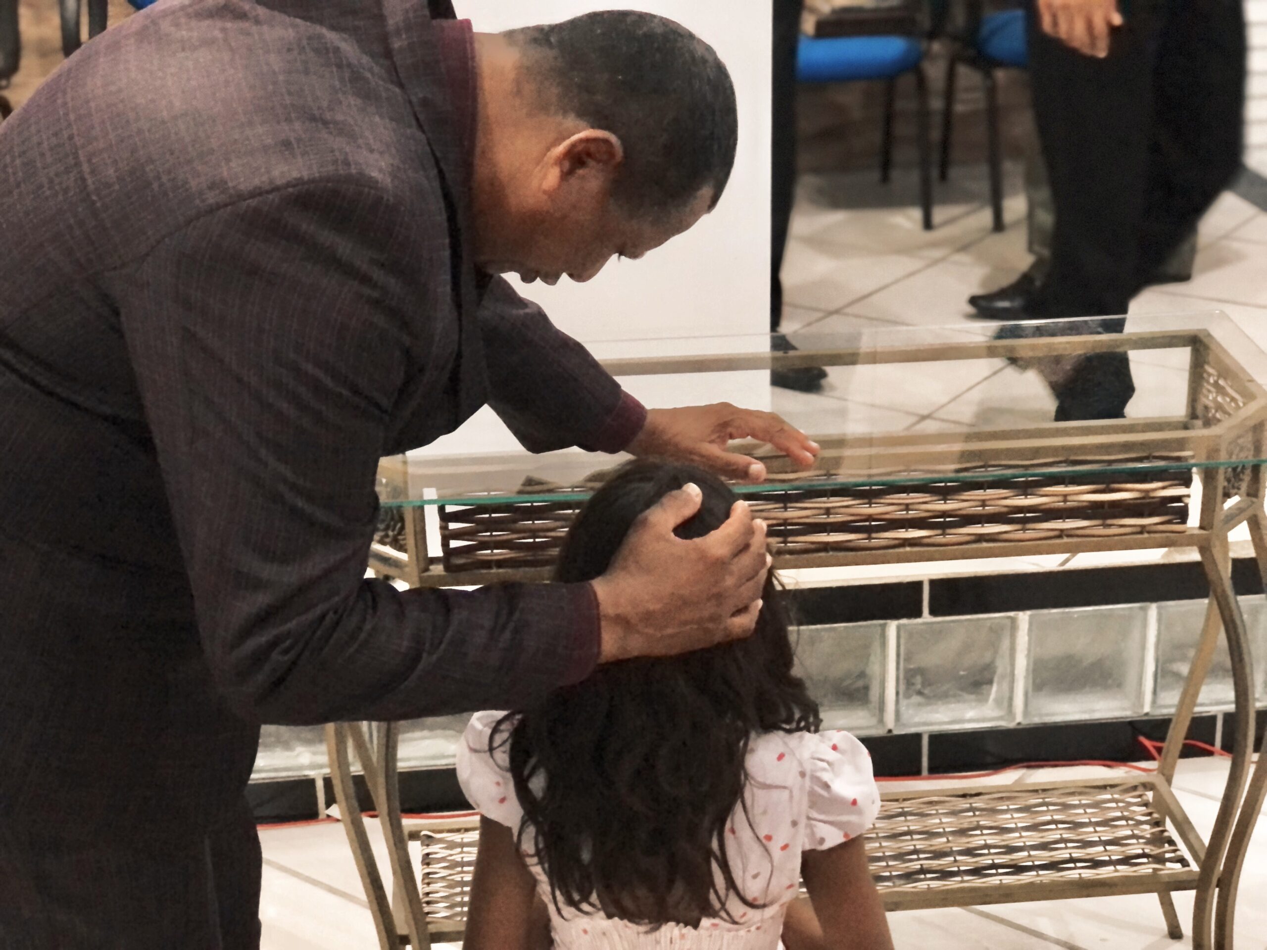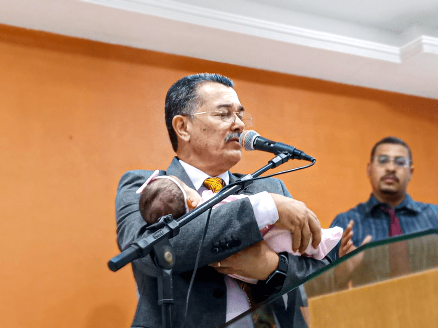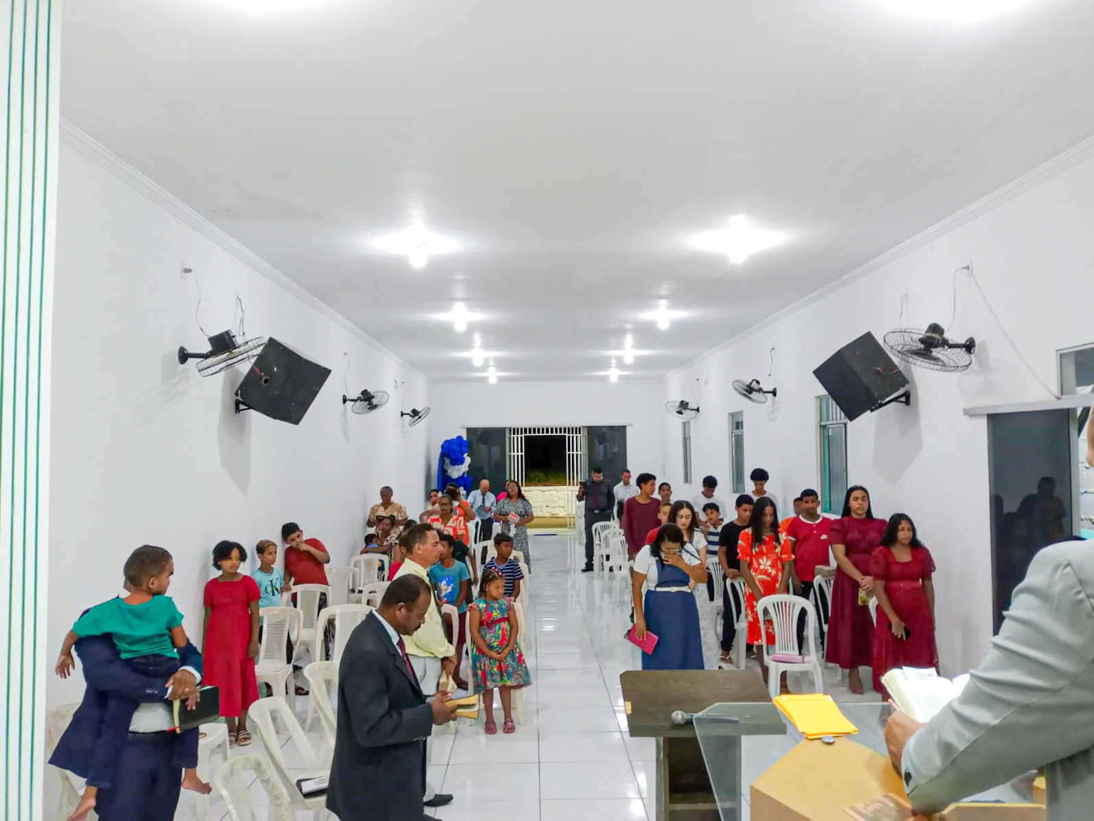 No final do culto, uma criança foi apresentada ao Senhor.
