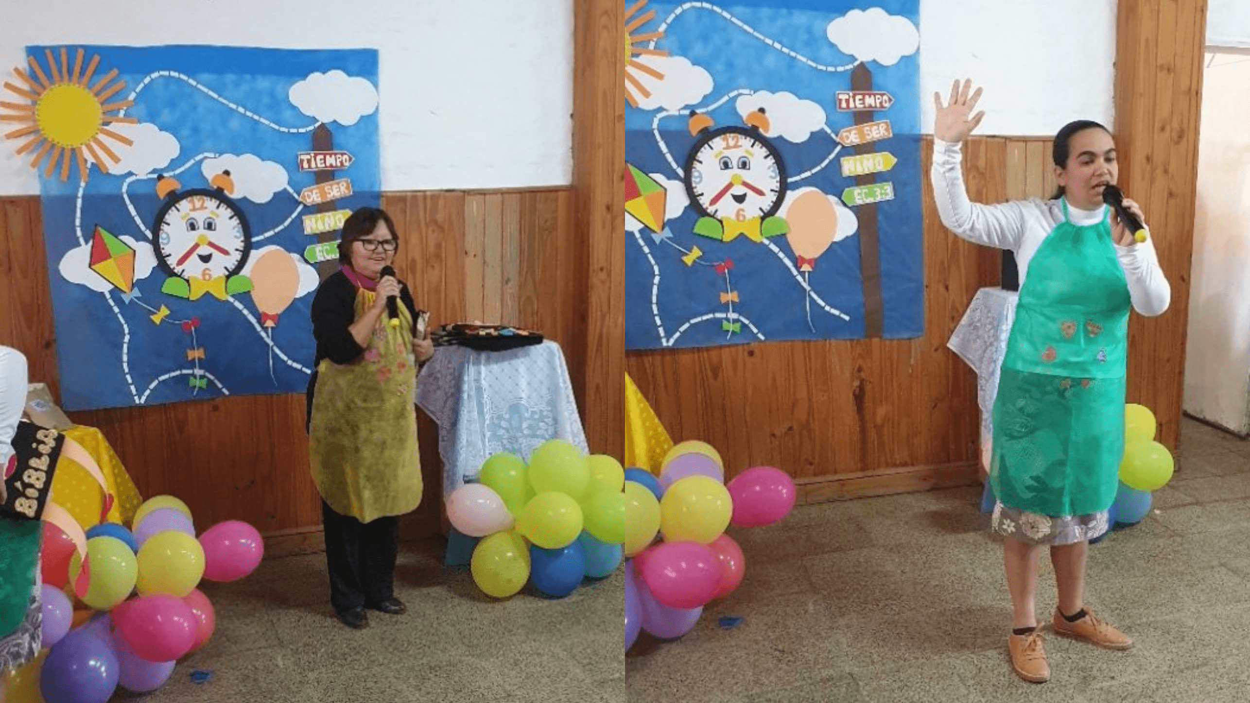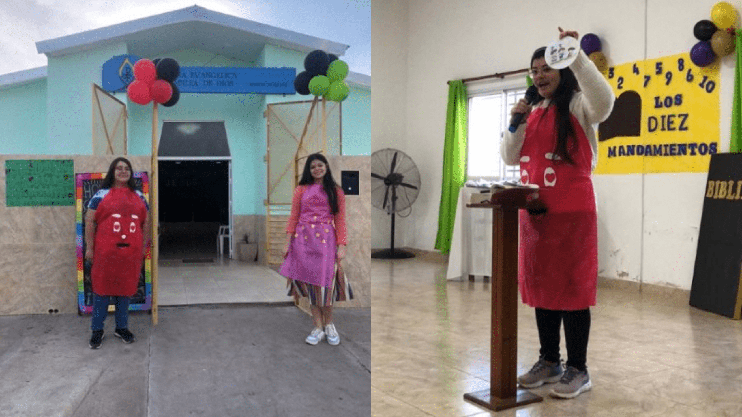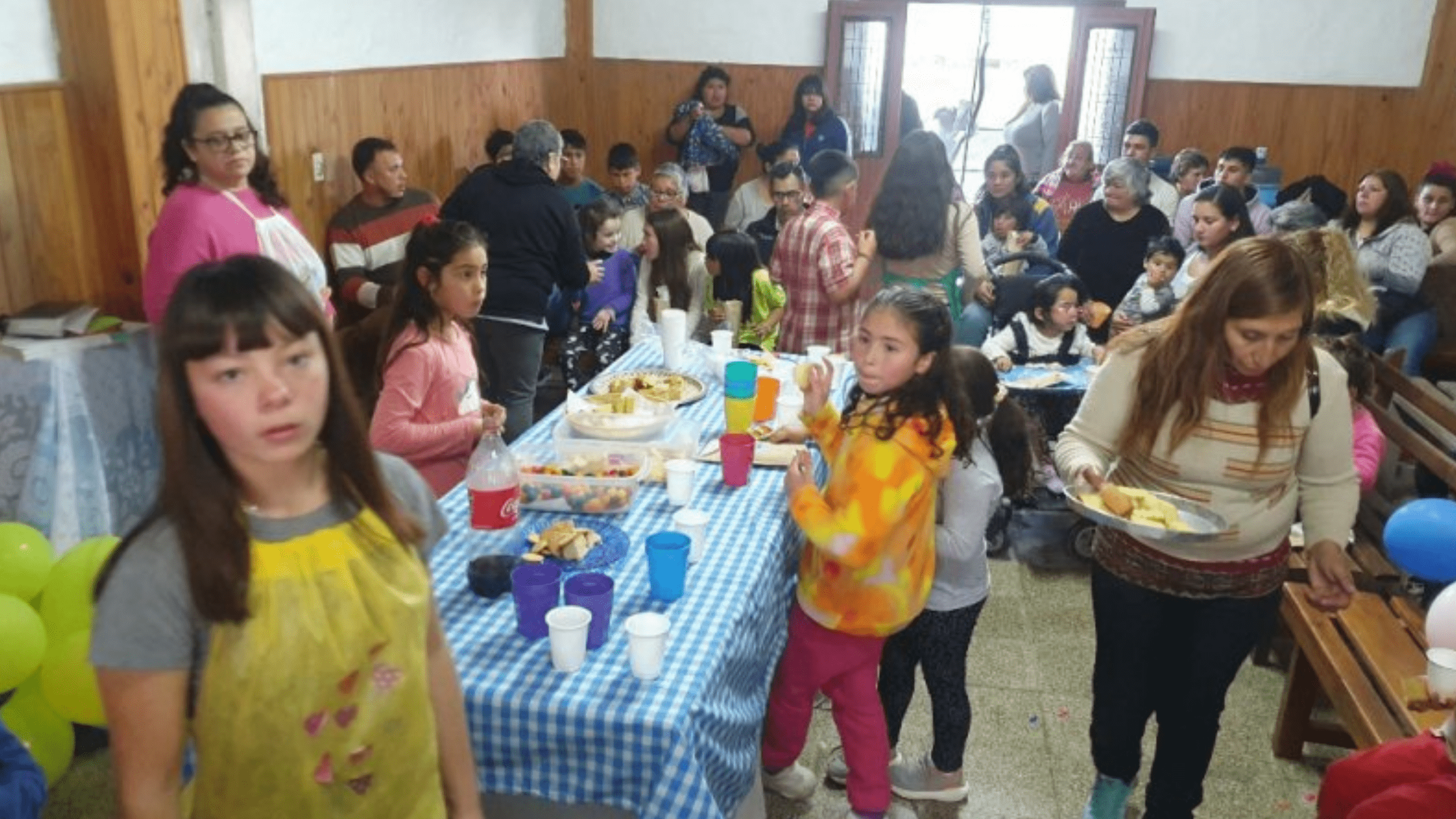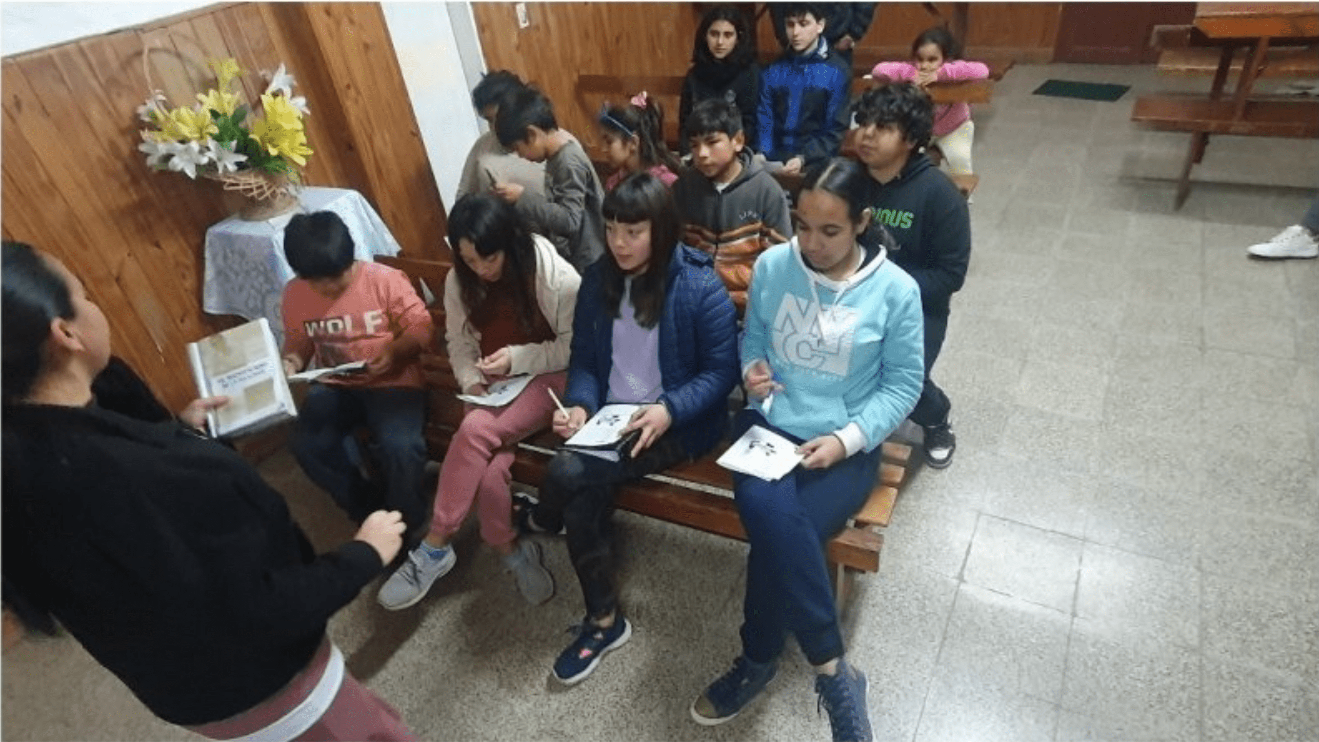 Quinzenalmente é realizada uma Escola Bíblica, que aqui chamamos de: “Tarde con los niños”, com brincadeiras e louvores infantis. Minha filha fica responsável por esse momento da recreação, juntamente com mais três adolescentes que temos na igreja. Depois a missionária e as irmãs contam a história Bíblica, na maioria das vezes com tema evangelístico. Ao final, as irmãs servem uma merenda.
