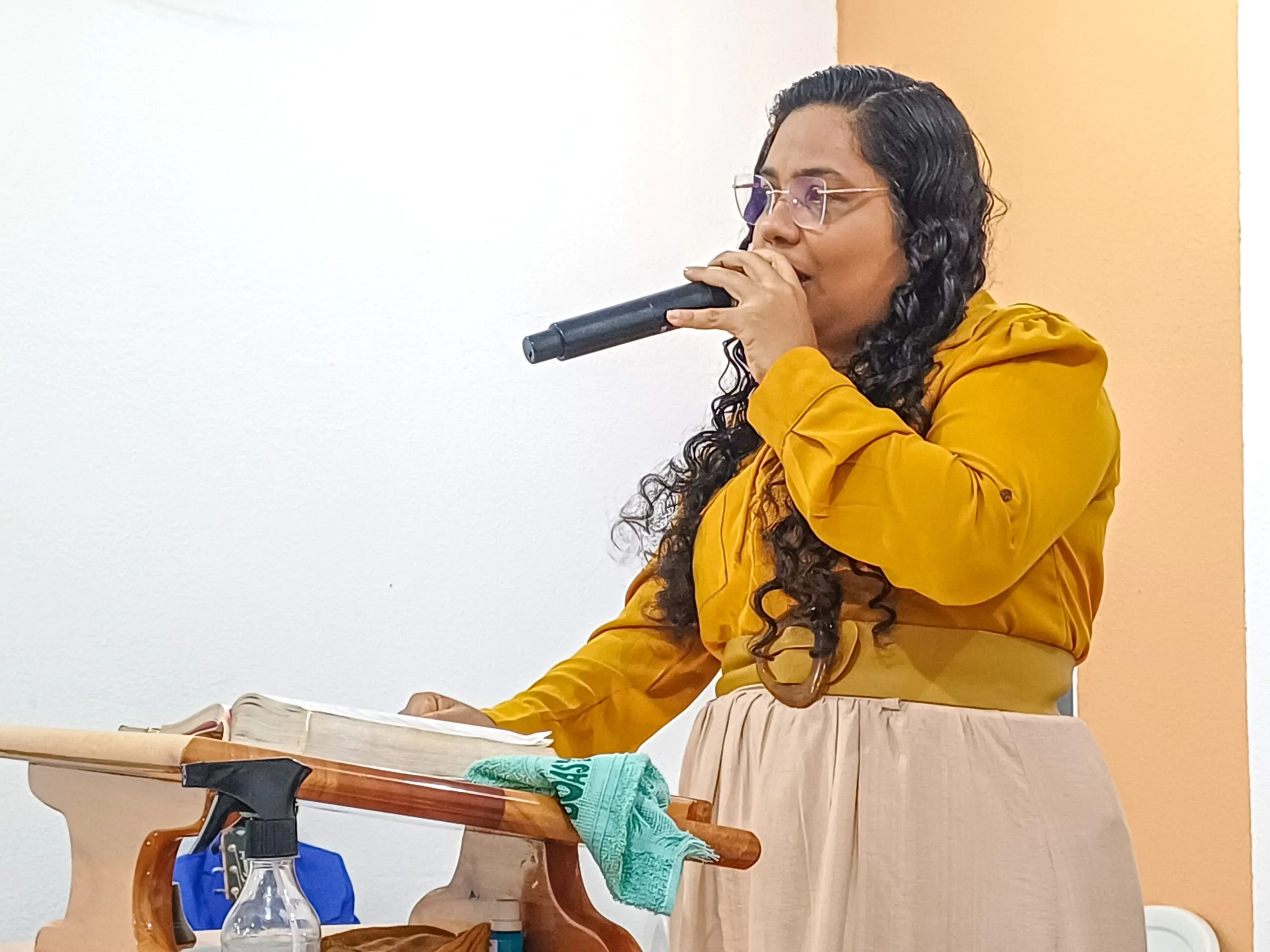 A irmã Alexssandra Lima (templo sede) foi a preletora do culto. Ela pregou a partir do texto bíblico de Efésios 3:14-21. Ela iniciou sua ministração destacando que Paulo escreveu essa carta em um momento muito difícil: preso, caminhando para a sepultura e cercado de lutas.