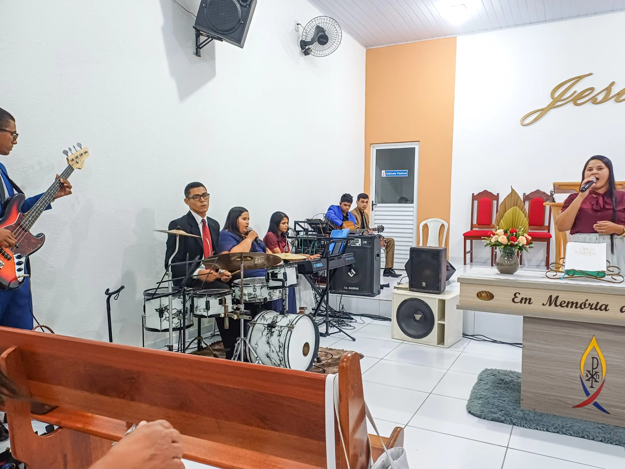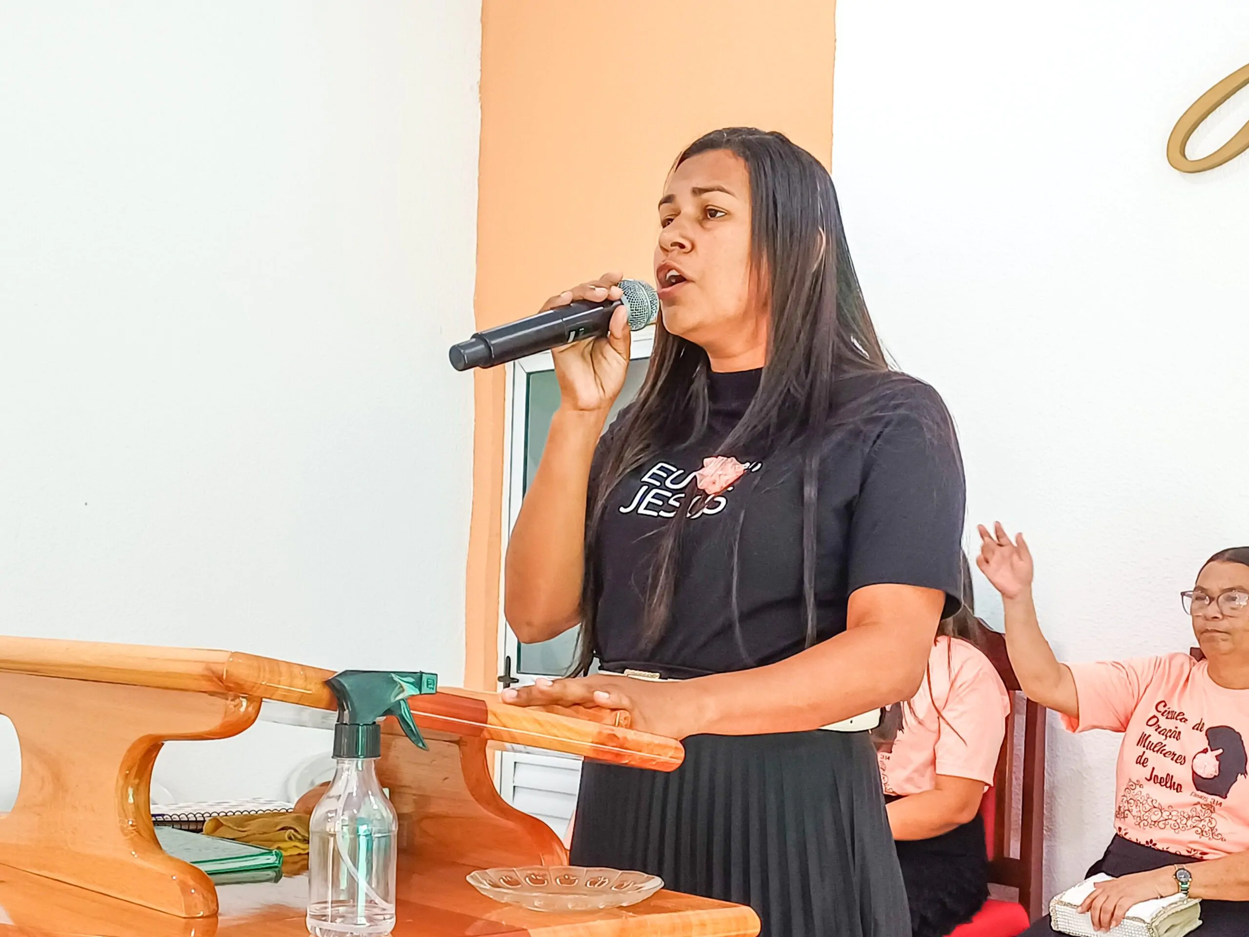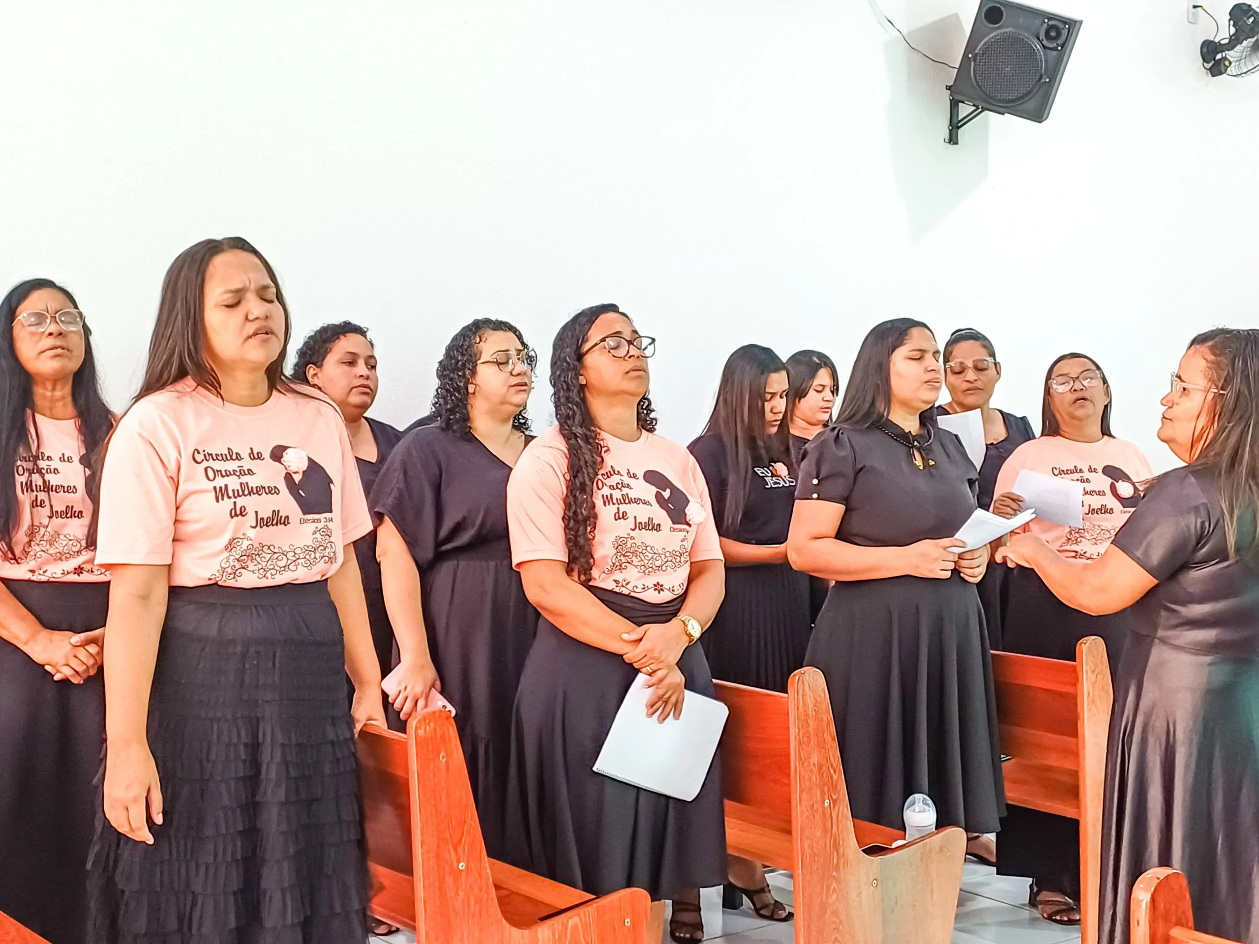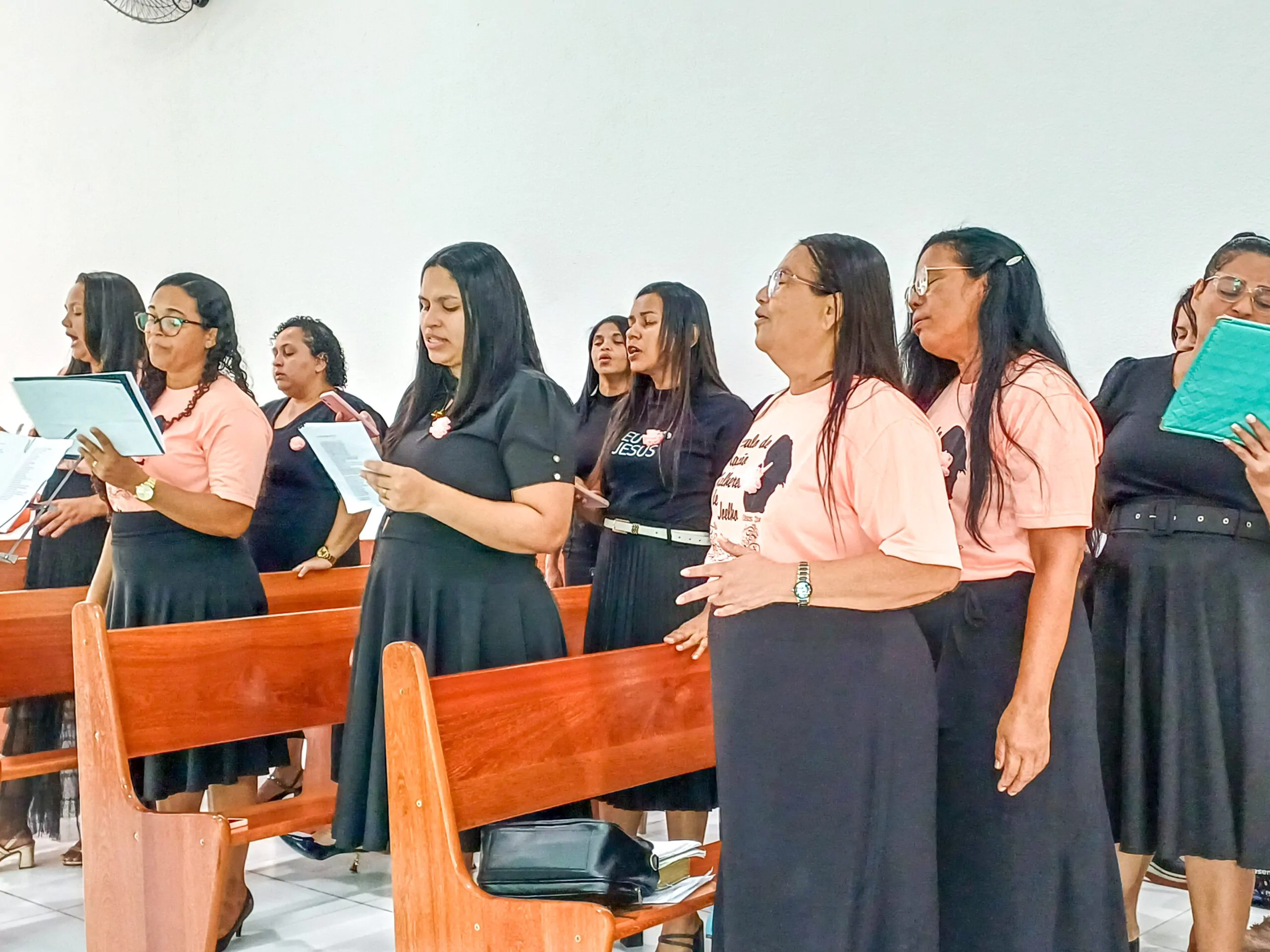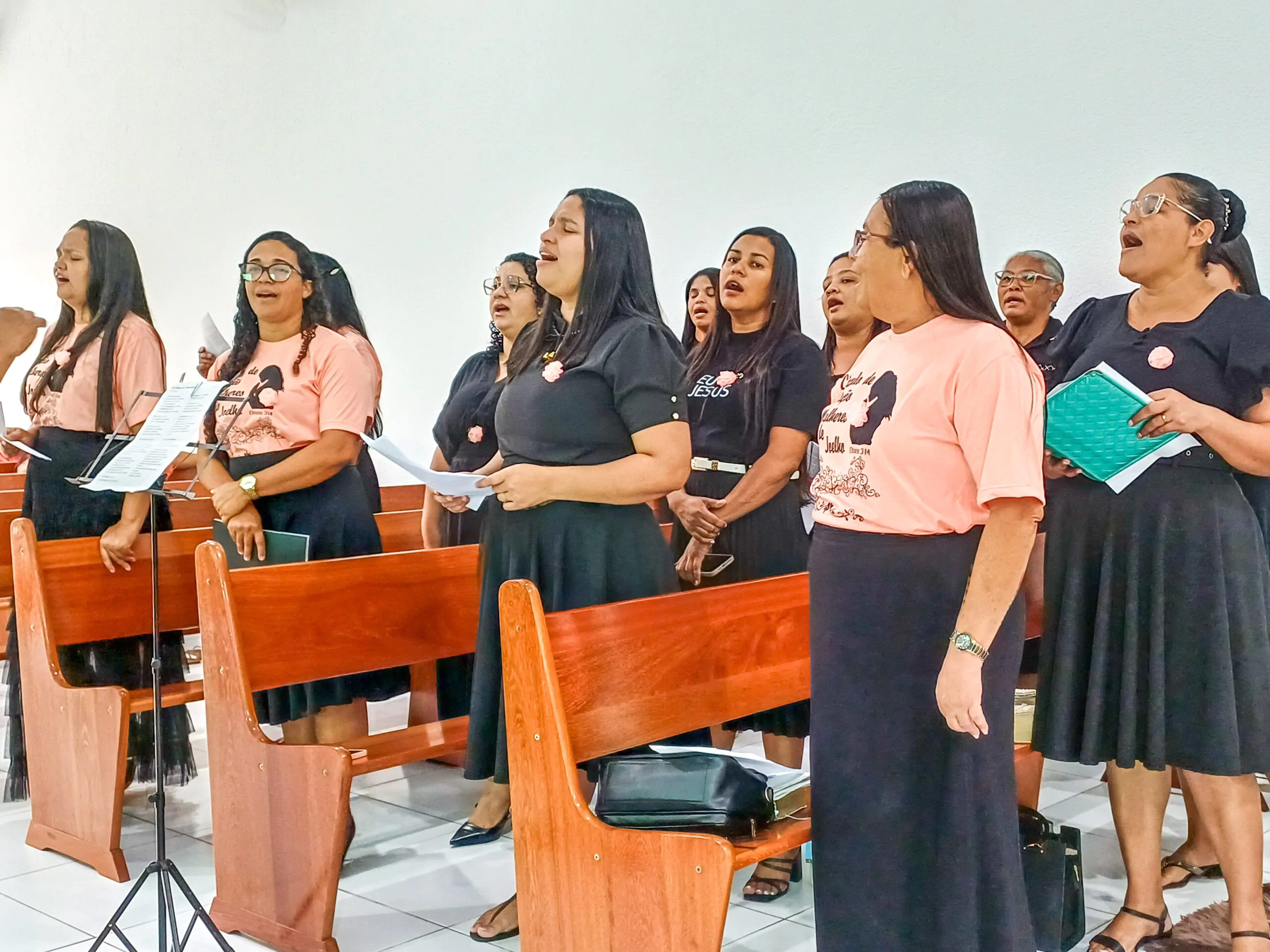 Durante o culto, o departamento de senhoras Diante do Altar e o departamento de senhoras Vaso de Alabastro (congregação Casas Novas) louvaram ao Senhor. Algumas irmãs também tiveram oportunidades para adorar a Deus. Elas agradeceram ao Senhor e compartilharam versículos bíblicos.